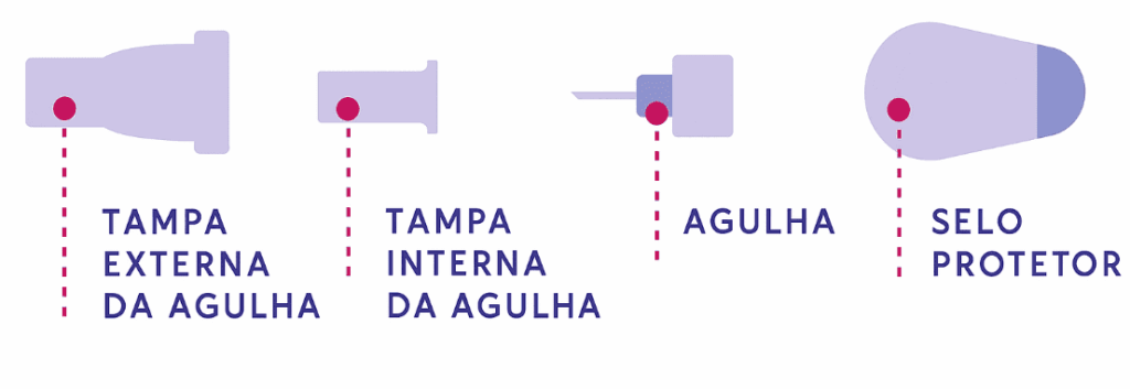 Sempre colocar uma nova agulha (de 4 a 8 mm) antes de cada aplicação. Nunca guarde a caneta com a agulha acoplada.