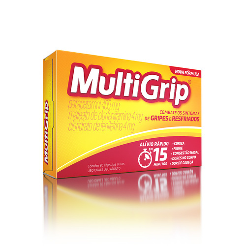 MultiGrip é indicado no tratamento dos sintomas de gripes e resfriados. MultiGrip é destinado ao alívio da congestão nasal, coriza, febre, dor de cabeça e dores musculares presentes nos estados gripais.
