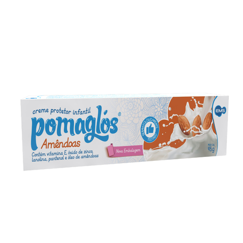 Pomaglós Amêndoas é um creme protetor infantil com óleo de amêndoas, vitamina E, óxido de zinco e lanolina, que atua na proteção da pele do bebê e na prevenção contra assaduras. Contém ativos hidratantes que mantém a pele do bebê saudável e macia.